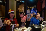 | 忘年会開始です、乾杯! | さっそくプレゼント交換 | サンタ三人娘も交換 |
