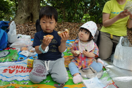 子供たちは残念ながらパンとオニギリです。岳はパンの蔵のアンパンとコロッケ山を食べました。