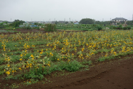 四ツ谷会場の場所が分からず、さ迷います。見つけた向日葵畑がコレです。岳曰く赤ちゃんの向日葵だそうです。