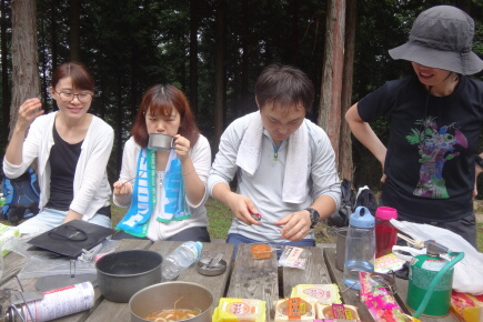 キツイ山が大好きな島村さんです。中国人は月餅を配るためだけに参加した修さん、料理担当の李さん、
