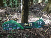 ナイキのブルーのスニーカーで問題なく登頂したタンさんなのでした。帰り道に紛らわしい看板があり、