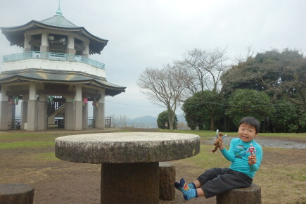 この石碑はいったい何なのか、未だに分かっておりませんが、本日は岳にポーズを取らしてみました。