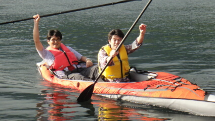 食後はスーさん所有のカヤックで本栖湖に出ます。ミクちゃん&ユユちゃんの写真の方を