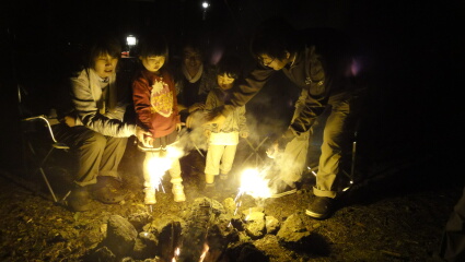 夕飯が終わったら、花火のお時間です。煙が隣のテントサイトに行ってしまうってことで、
