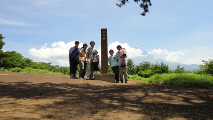 富士山は残念ながらちょっと雲がかかっておりますが、陽気がよくて眺めはバツグンの山頂です。