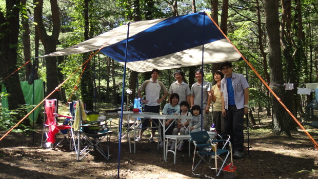 伊原くんがいる時の集合写真です。キャンプは楽しいですね。みんなキャンプグッズをいっぱい持ってます。