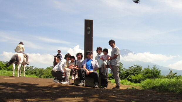 お馬のお尻も写っている山頂の集合写真です。ちなみに、中川家は高速渋滞に巻き込まれたそうです。。。