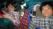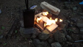 スーさんのアドバイスにより、電池を抜いて、しばしキャンプファイヤーで乾燥させます。