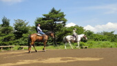 山頂には馬で登る人もいます。丁度、馬が2頭登ってきました。陽気が良いので、なかなか絵になります。