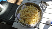 フライドポテトもまったり揚げて、ゆったり食べます。最後のハンバーガーが出る頃には、