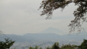 食後は展望台で富士山を見ます。太陽が眩しく、くっきりした富士山は見えませんでしたが、