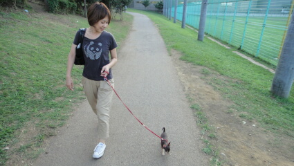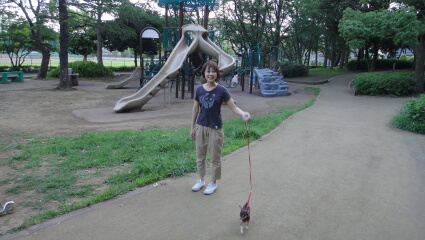 等々力緑地は本当にデカイのです。そんななか小さいマロンが散歩しているので、マロンを見たおばちゃんも