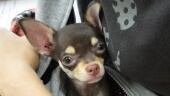 再び公園入口に戻って記念写真。公園デビューしたマロンはぐっすり寝ました。次回、山デビューの日は近い?