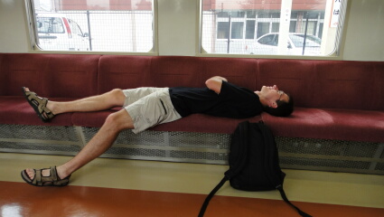 添い寝状態で眠れません(笑)。というか、空気が薄くて頭が痛くなり、ほぼ、一睡もできない状態でした。