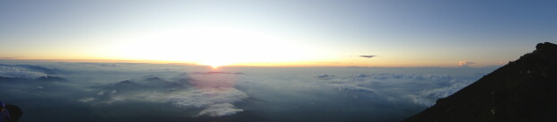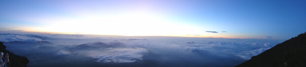 今回、初めてパノラマ機能を使ってみました。御来光と山頂の景色と大砂渡りです。楽しい富士山温でした。
