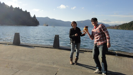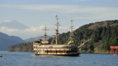 芦ノ湖から富士山がとっても綺麗に見えます。遊覧船の海賊船と箱根神社の龍宮の鳥居が絵になります。