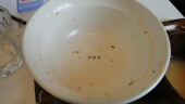 戻ってきても行列が変わりませんが、並んでランチです。食後のどんぶりの底になんと「アタリ」の文字が!