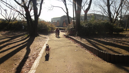 食後はリードを外して、公園を散歩します。リードを外してもチョロチョロとついてきて歩きます。
