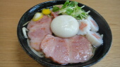 お昼ごはんに、昨日実家でもらった宮古そばに沖縄ハムをのせて、餅を添えていただきます。