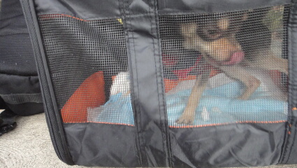 兼ねて阿夫利神社へ向かいました。ペットバッグの中でトイレシーツ食べてます。ストレスですね。