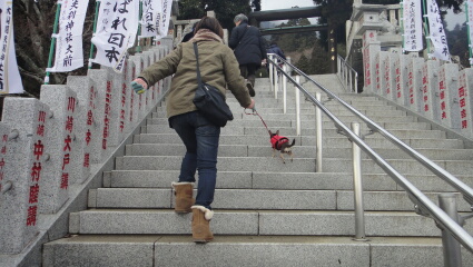 ケーブルカーで阿夫利神社駅に着いたら、マロンも再び元気になり、神社の階段を駆け走ります。