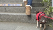 いつものコースです。マロンは階段を一生懸命登ります。かろやかに登ります。運動神経は良いようです。