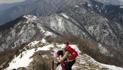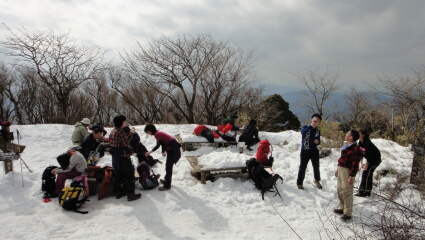 トトロの森を抜けて、雪も溶けるパワースポットの烏尾根に無事到着。そして、下山。