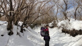 ヤビツ峠バス亭を目指して、歩きます。そして、更に想定外が発生。残雪の量が半端ない。