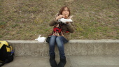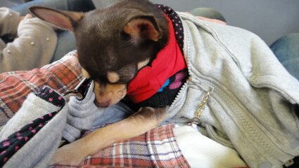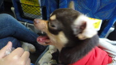 マロンは全く歩きませんのでバスで帰ります。初めてのお泊りでお疲れのマロンちゃんなのでした。