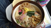 | 屋台の広島焼き | 車内で河津桜釜飯 | お土産デコポン |