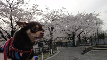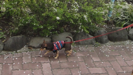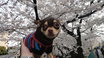 でもやっぱり、渋川の桜の方が綺麗なので、今回も渋川の桜とマロンちゃんでお送りします。