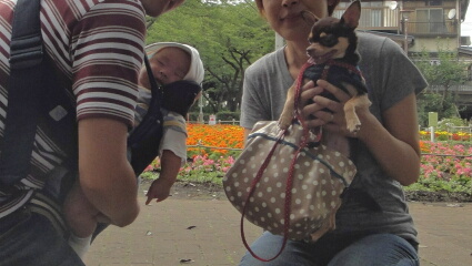 岳ちゃんの公園デビューです。まだ、2回予防接種が残ってますが、公園デビューしちゃいます。