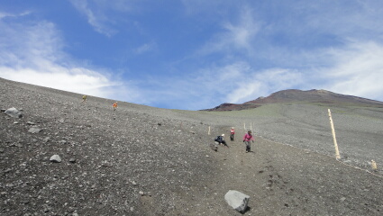 見ずに大砂走りへ。1歩3mで飛ぶように走っていくことができる名物下山コースなのです。