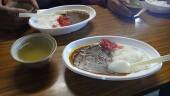 山小屋に戻って一眠りしてから、出発です。山田さんは山小屋で800円の豚汁を食べてスタートです。