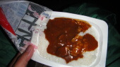すぐに冷めます。スープパスタもパスタがパリパリです。上から降ってくる砂も入ってジャリジャリです。