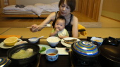 そして、夕飯です。赤ちゃんがいると、部屋食は、助かりますね。中居さんは4Fまで階段で上がって大変です。