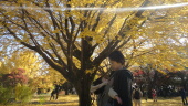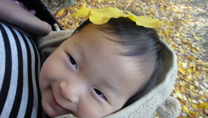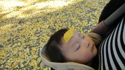 再び爆睡。イチョウの絨毯が広がっているところで、イチョウマン変身です(笑)。銀杏臭くても目が覚めません。