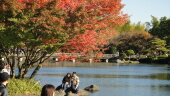 なんて、寝ている岳くんを使って遊んでしまいましたが、日本庭園の紅葉は綺麗に赤くなっています。