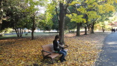紅葉を見に昭和記念公園へ行こうと決めます。11時頃にベビーカーで出発すると岳くんの機嫌が悪い。