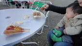アメリカンドッグとたこ焼を食べて帰宅です。帰りにHalf Birthdayの写真を取りに行きましたとさ。