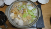 父のお土産のりんごまるごとアップルパイを食べて、夕飯はちゃんこ鍋を食べます。