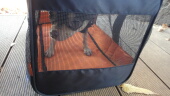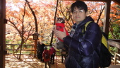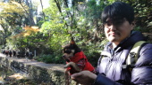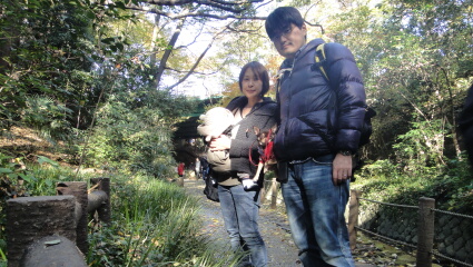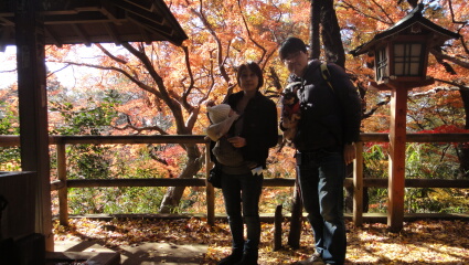 等々力不動尊のモミジはピークは過ぎたものの、とっても綺麗でした。岳くんはちょっと不機嫌な様子。