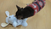 食べませんでした。お家に戻って、ハムをあげます。お昼ごはんは、お家で鶏肉と牡蠣のちゃんこ