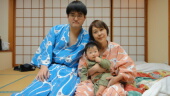お部屋の露天風呂で記念写真を撮ってチェックアウトです。父似のセクシーなおへそがでてしまいましたね。