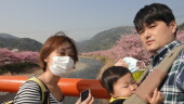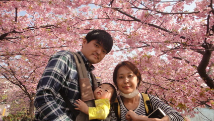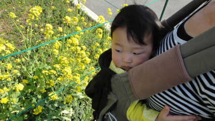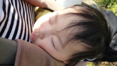 電車ではしゃいでいた岳くんですが、駅を降りると爆睡です。桜が綺麗だよ岳くん、起きて!