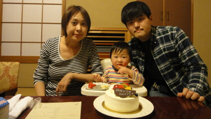 貸切状態でした。部屋に戻ると、ケーキが用意されております。まー、宿のプランに入っているのですが。