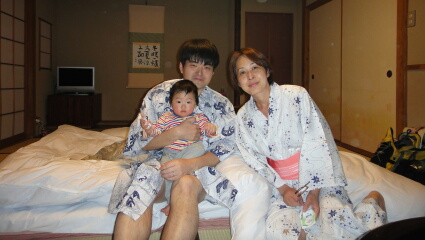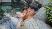 お部屋の露天風呂に入ります。その後、大浴場に行きます。部屋に戻って朝食です。