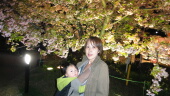 食後に桜のライトアップを見に行きます。宿に戻って大浴場に入ります。露天風呂が広くて気持ちいい。