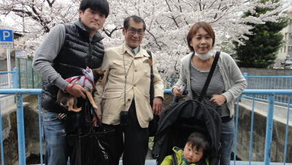 今年は桜が満開になるのが早すぎますね。前回より2週間も前となりますが、一年振りの家族花見です。