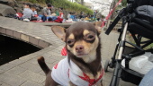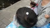 花見会場は子供が多く、マロンちゃんはかわいいかわいいと人気者です。川沿いの子供はちょっと怖いですね。